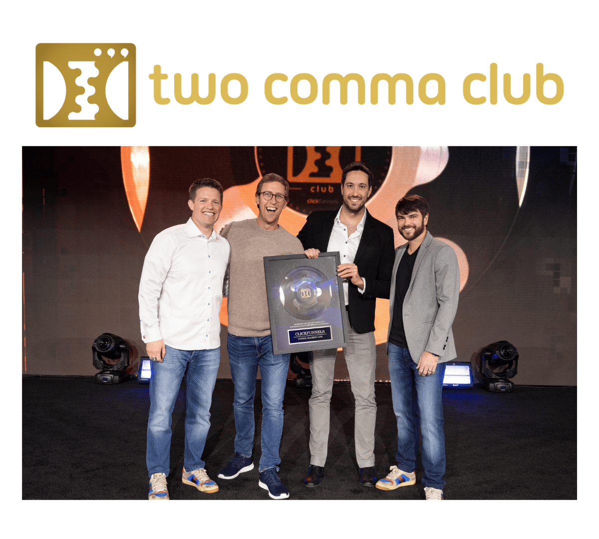 Vincenzo ha ricevuto il premio "2 Comma Club" dal fondatore di ClickFunnels Russell Brunson.